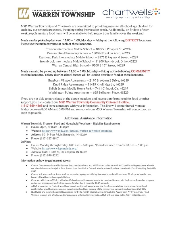 You may access a downloadable MSD Warren Township Food Outreach document here - English / Spanish